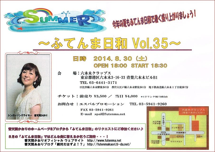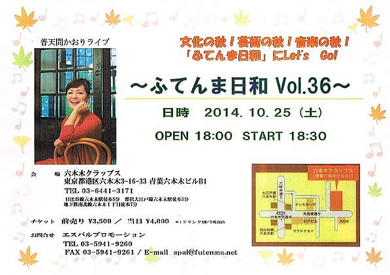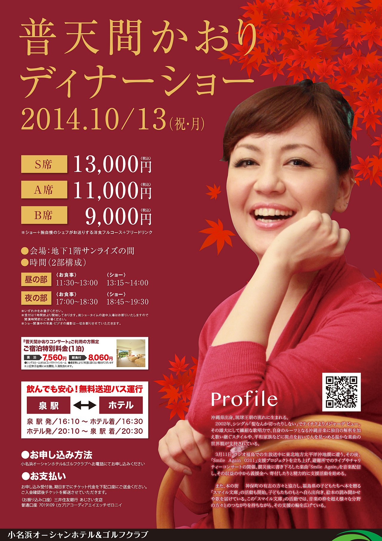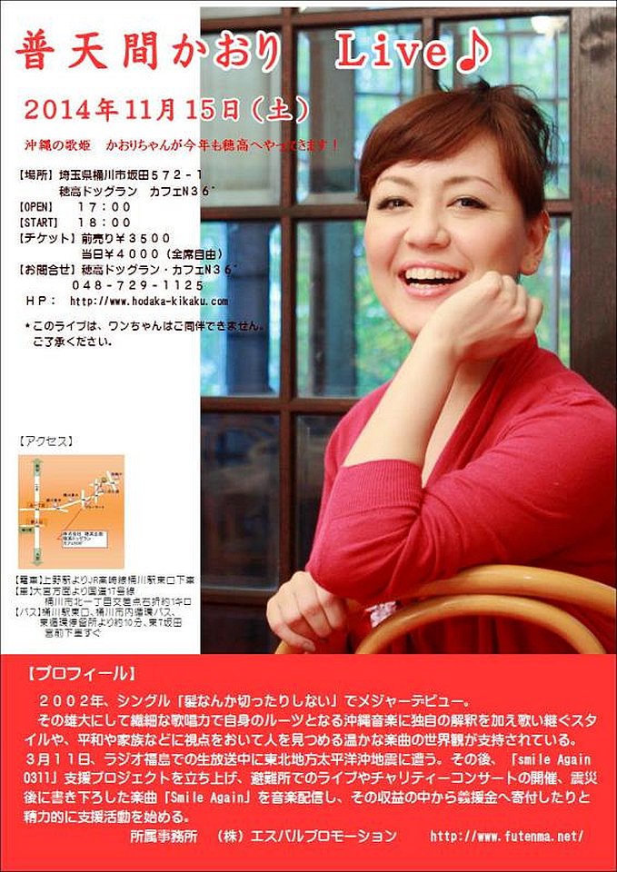 普天間かおりミニコンサートは22日(土)18:00〜(予定)