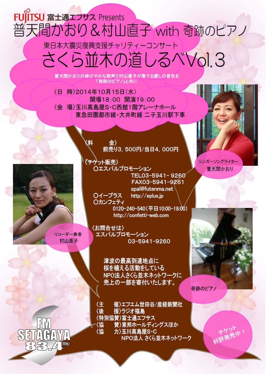 奇跡のピアノ&普天間かおりチャリティーコンサートは下記になります