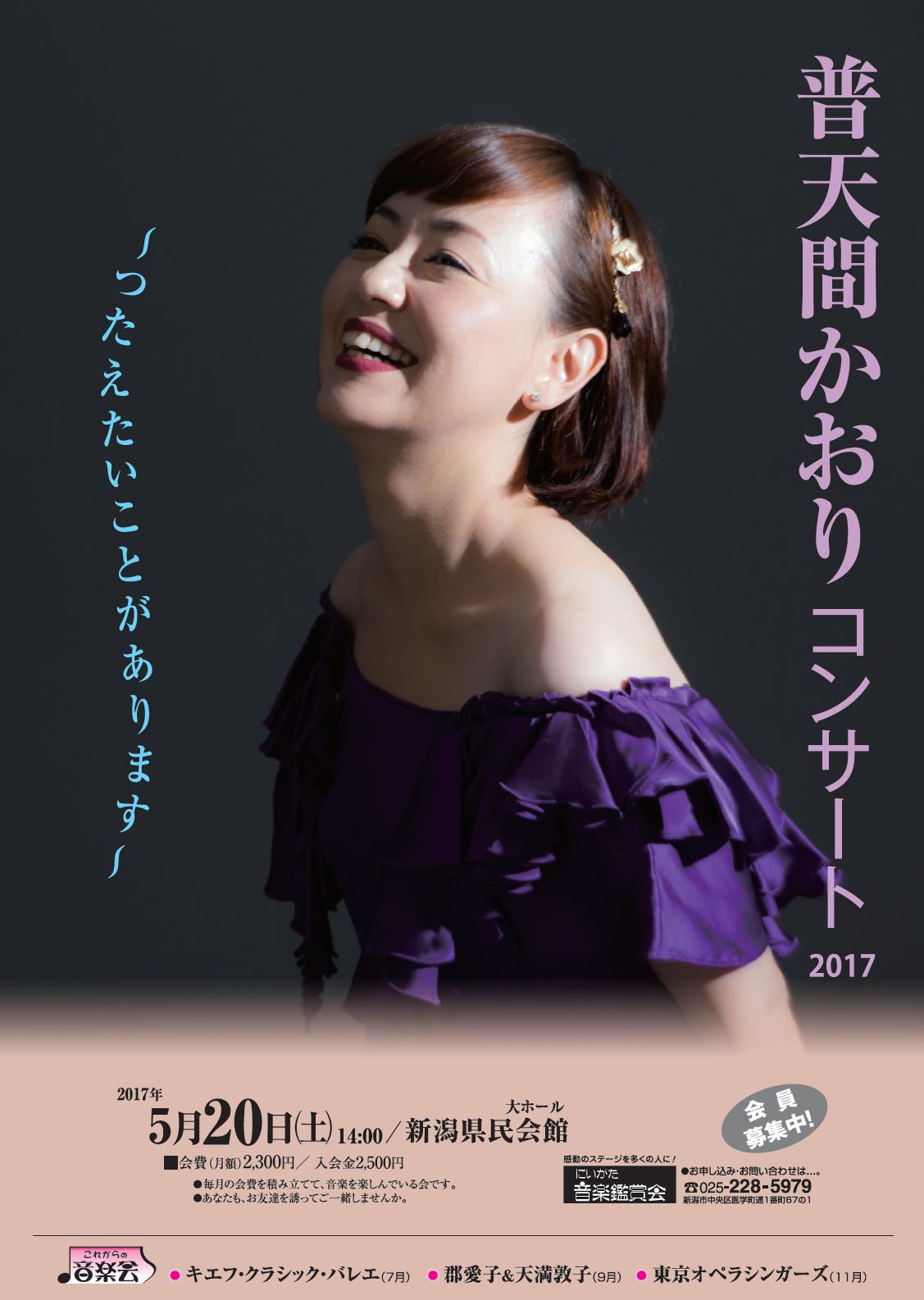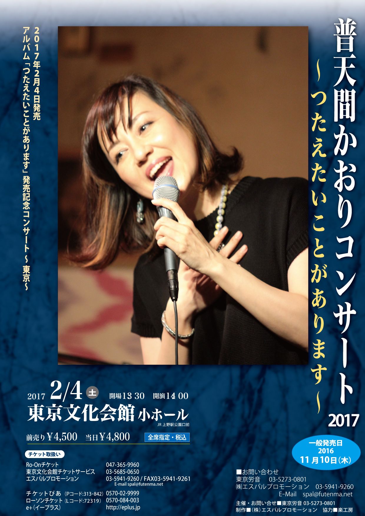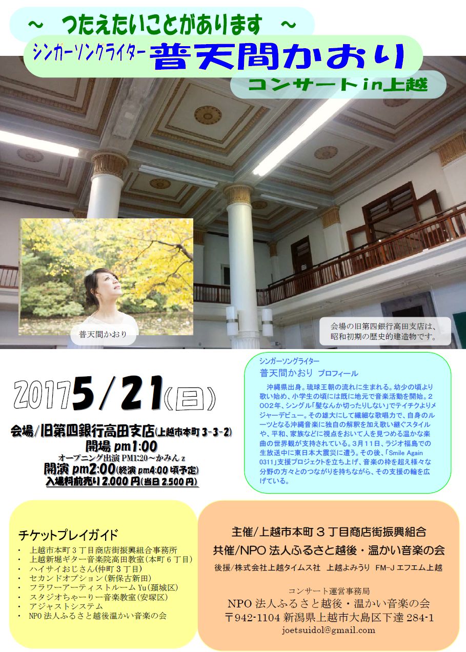 2月4日(土) 普天間かおりコンサート2017 〜つたえたいことがあります〜 |