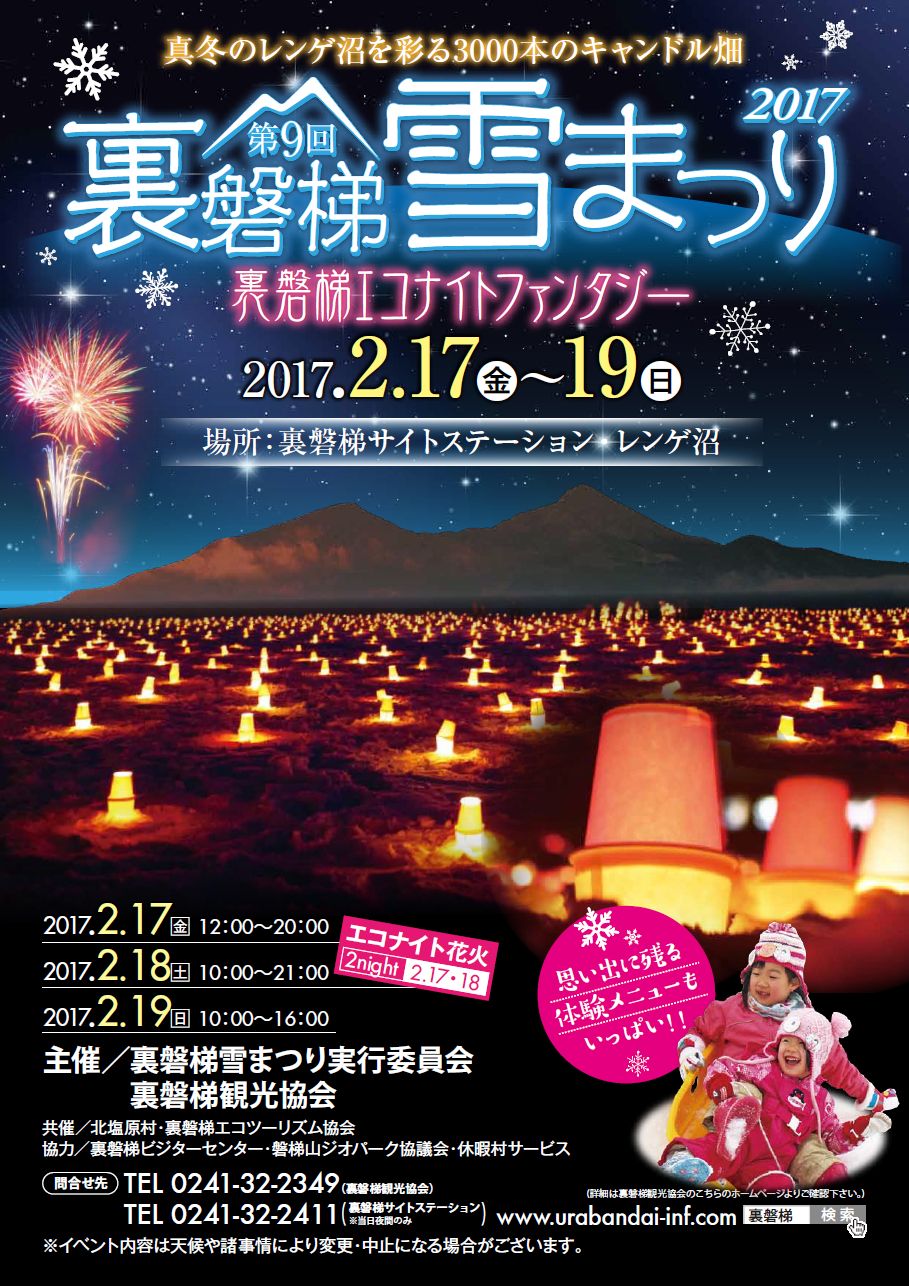 2月17日(金)〜19(日) 第9回 裏磐梯雪まつり 2017 裏磐梯エコナイトファンタジー |