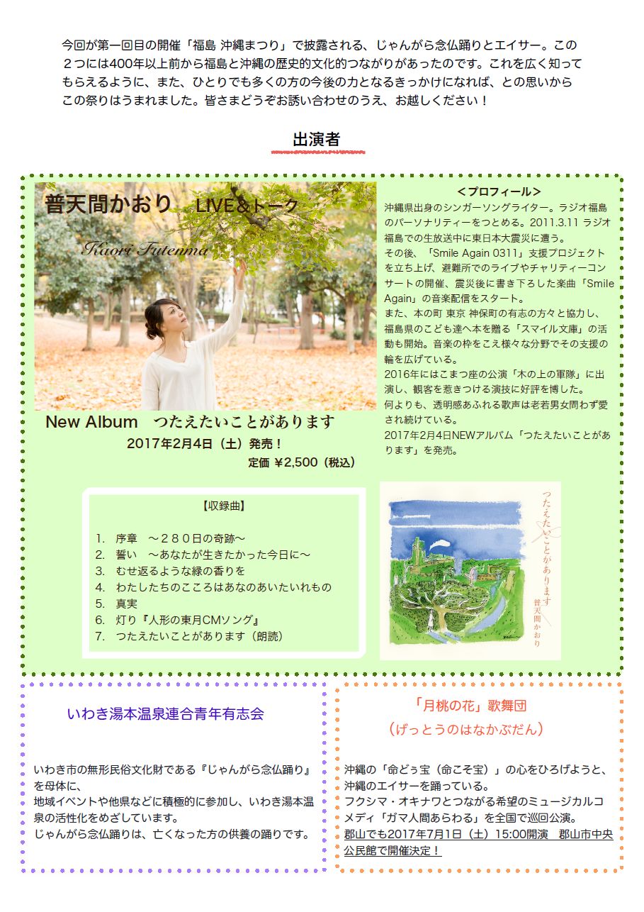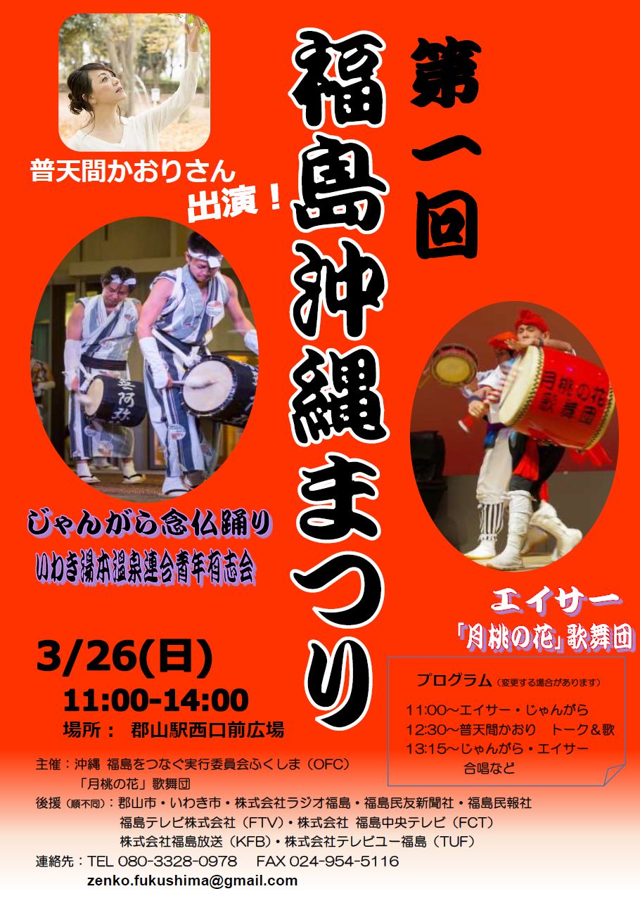 3月26日(日) 「第一回福島沖縄祭り」 普天間かおり 出演 |