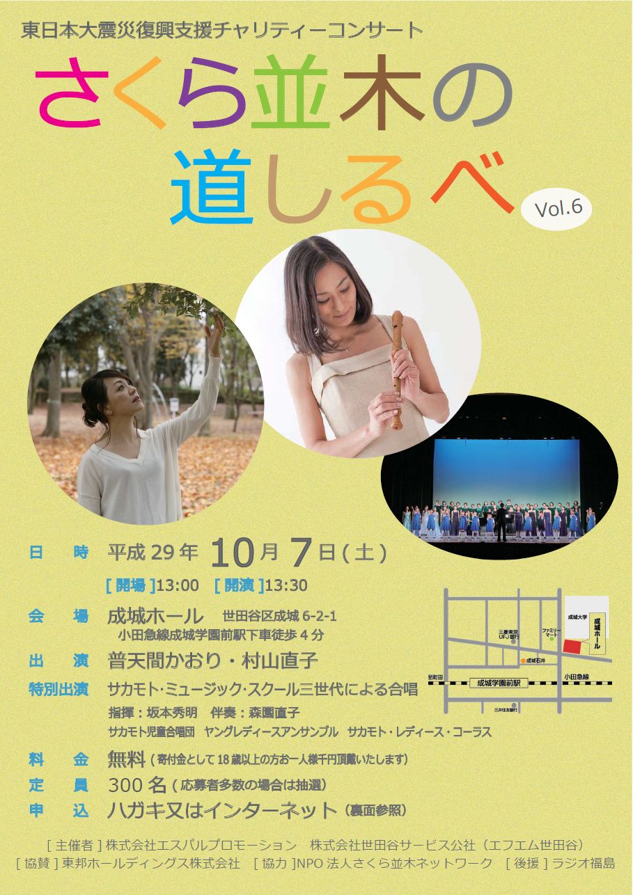 10月7日(土) 東日本大震災復興支援チャリティーコンサート さくら並木の道しるべ Vol.6 |