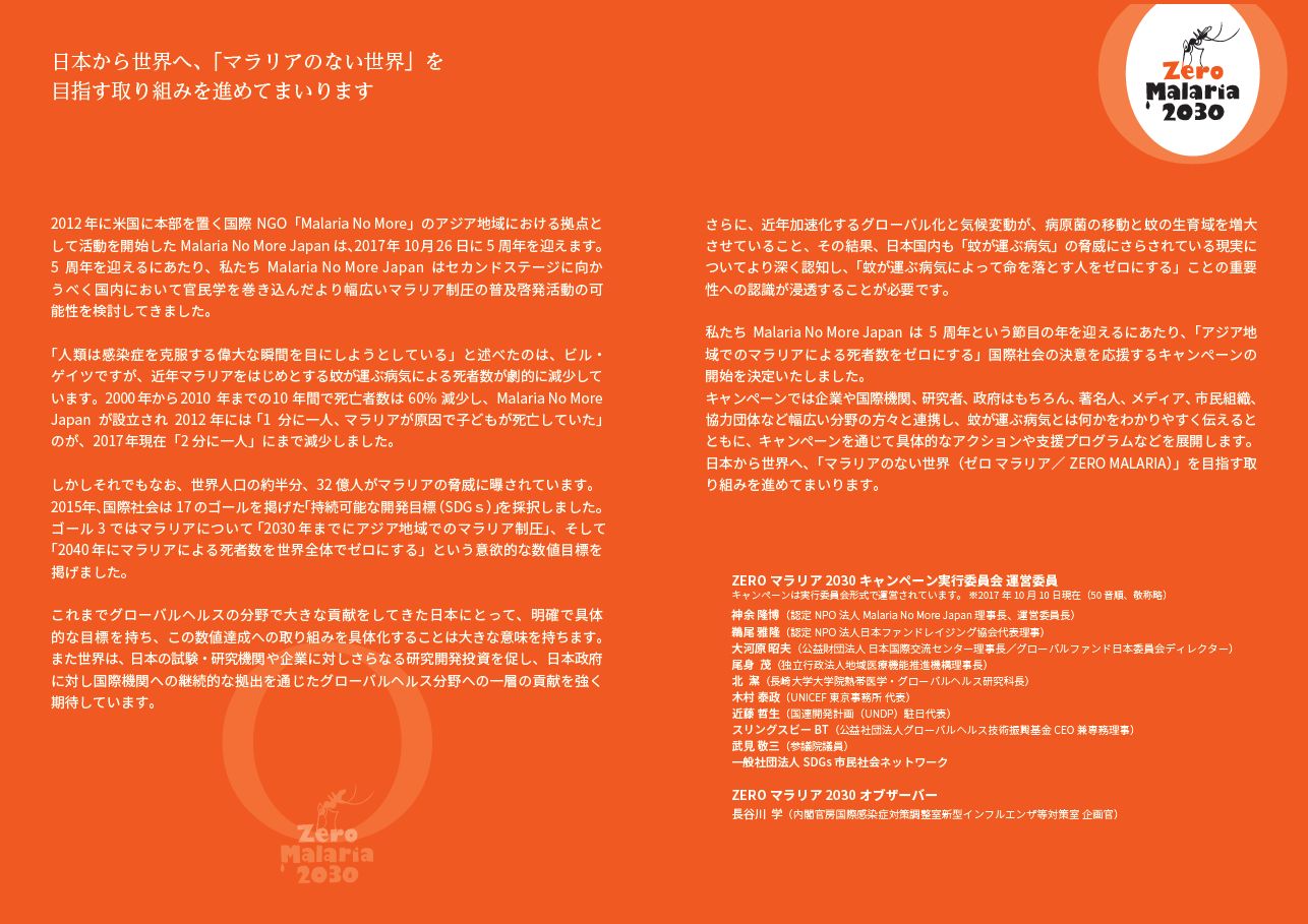 10月10日(火) ZERO マラリヤ2030キャンペーン |