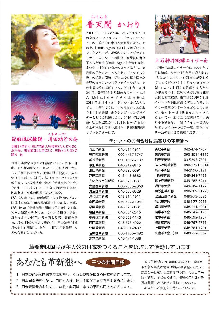 11月11日(土) 埼玉革新懇「沖縄に思いをよせて〜歌と踊りの集い〜」 |