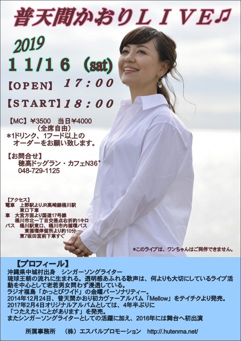 | 11月16日(土) 普天間かおりLIVE 穂高ドックラン・カフェN36° |