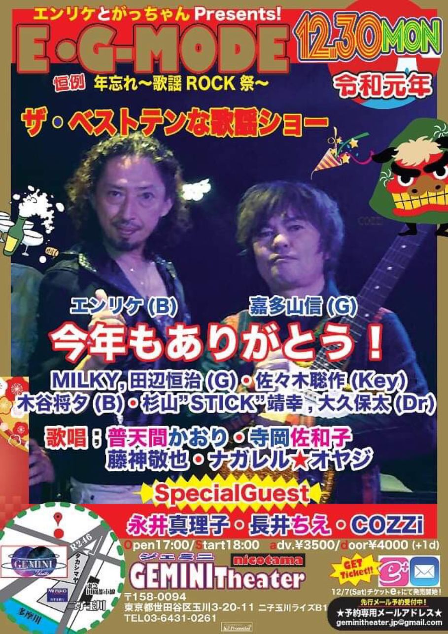 | 12月30日(月) E・G-MODE 恒例 年忘れ~歌謡ROCK祭~ ザ・ベストテンな歌謡ショー |