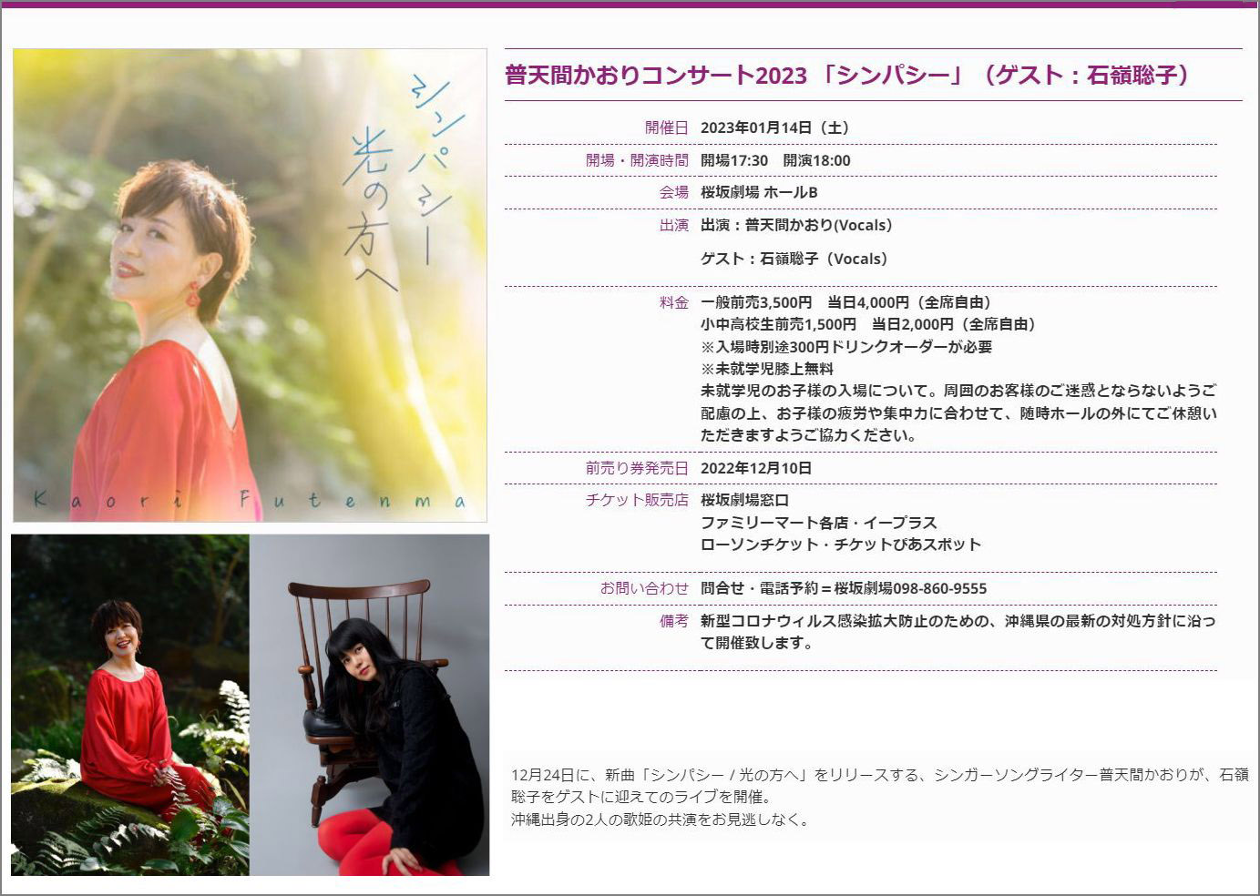 普天間かおりコンサート2023 「シンパシー」(ゲスト:石嶺聡子) |