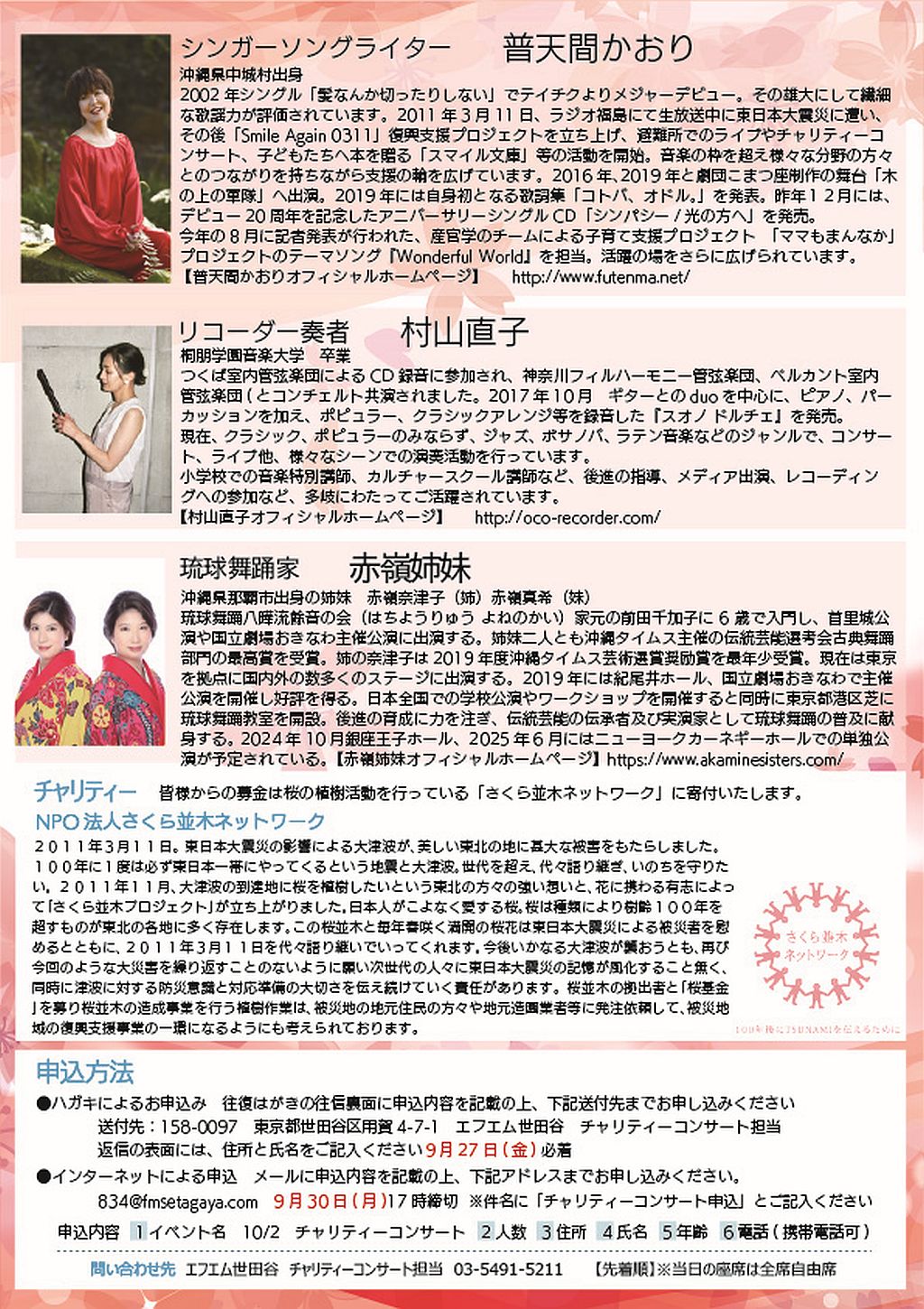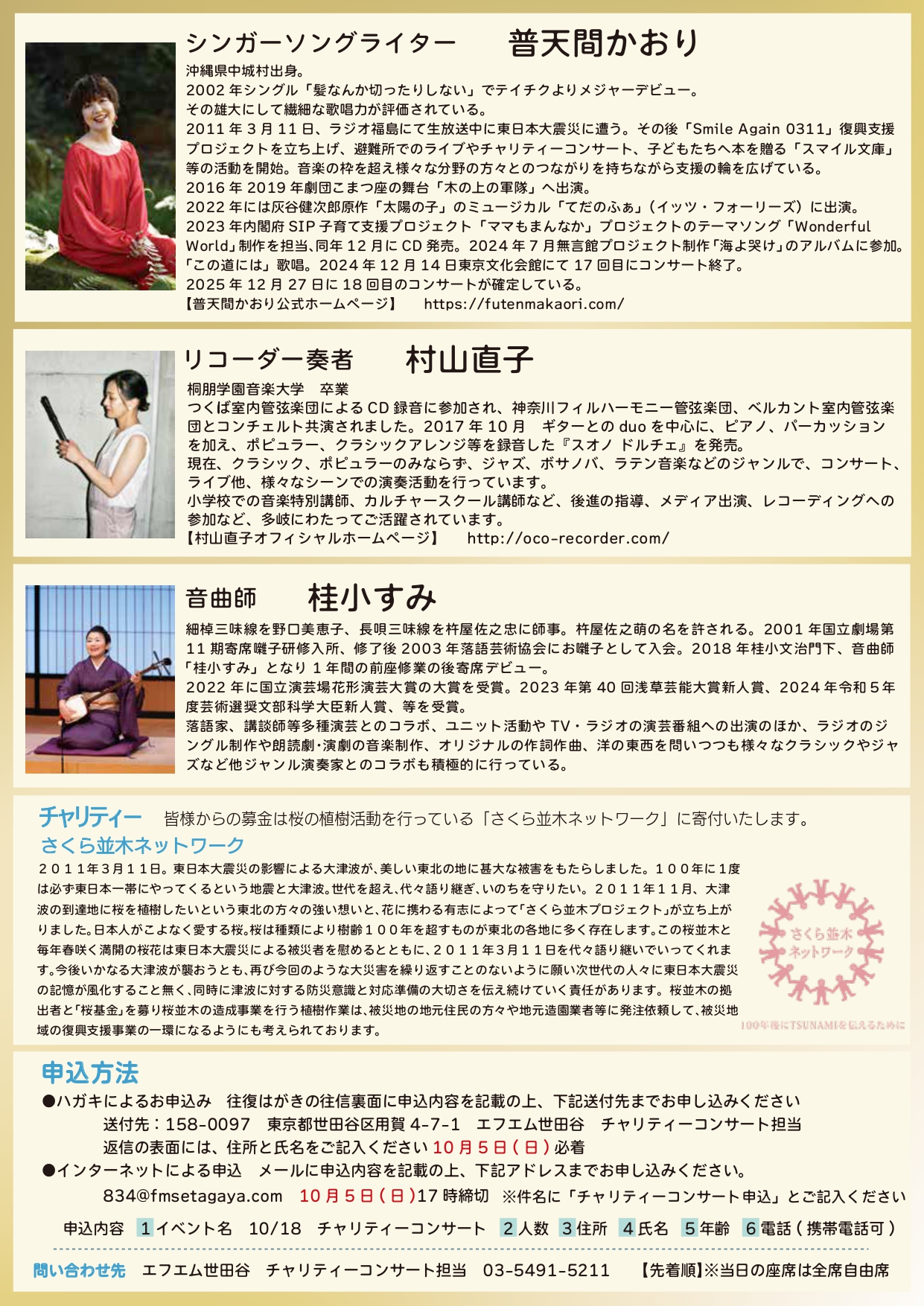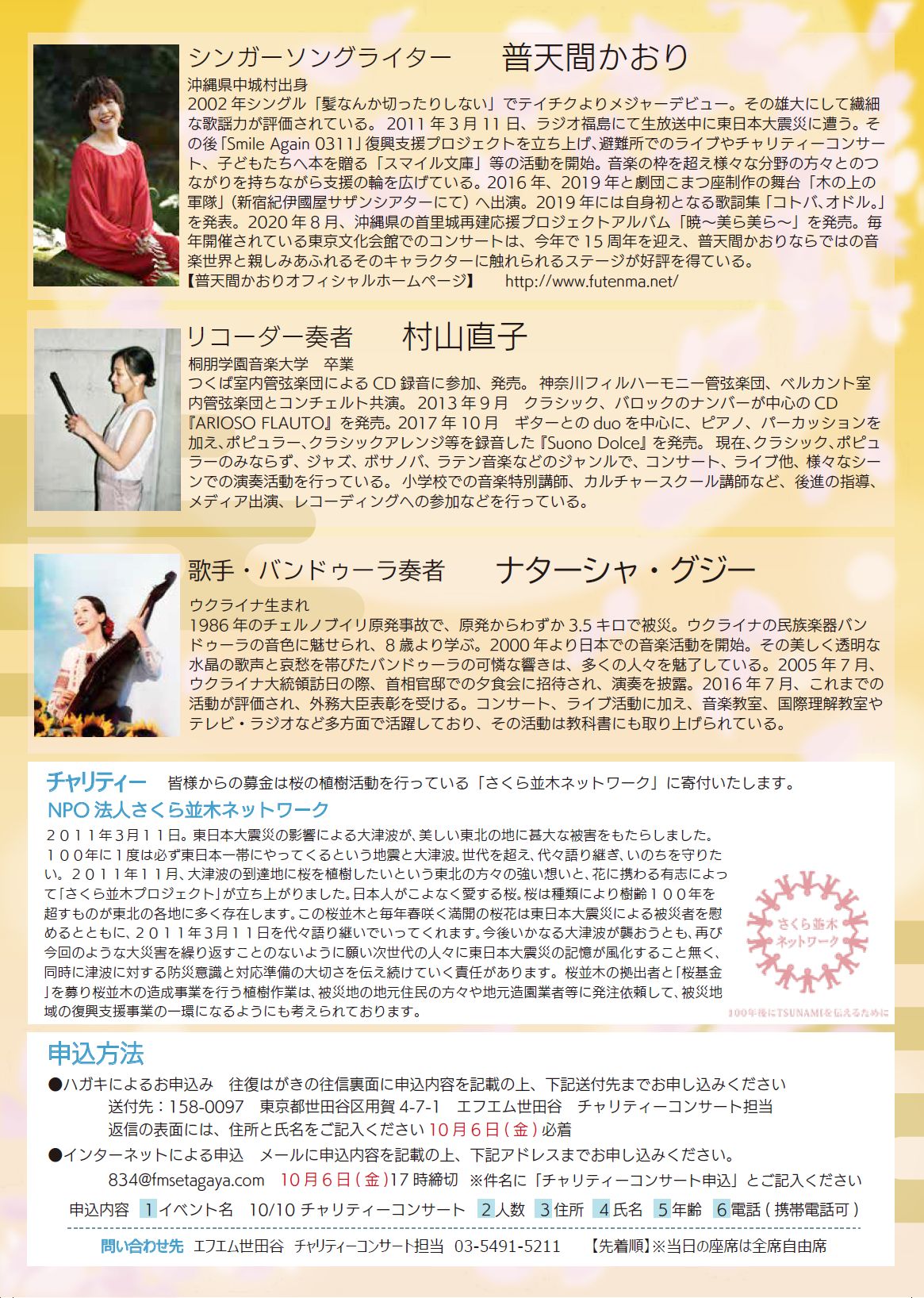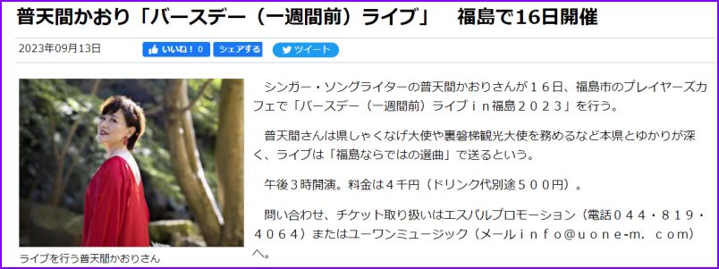 3月18日(土) 普天間かおりライブ2023 「シンパシー」~in福島 |