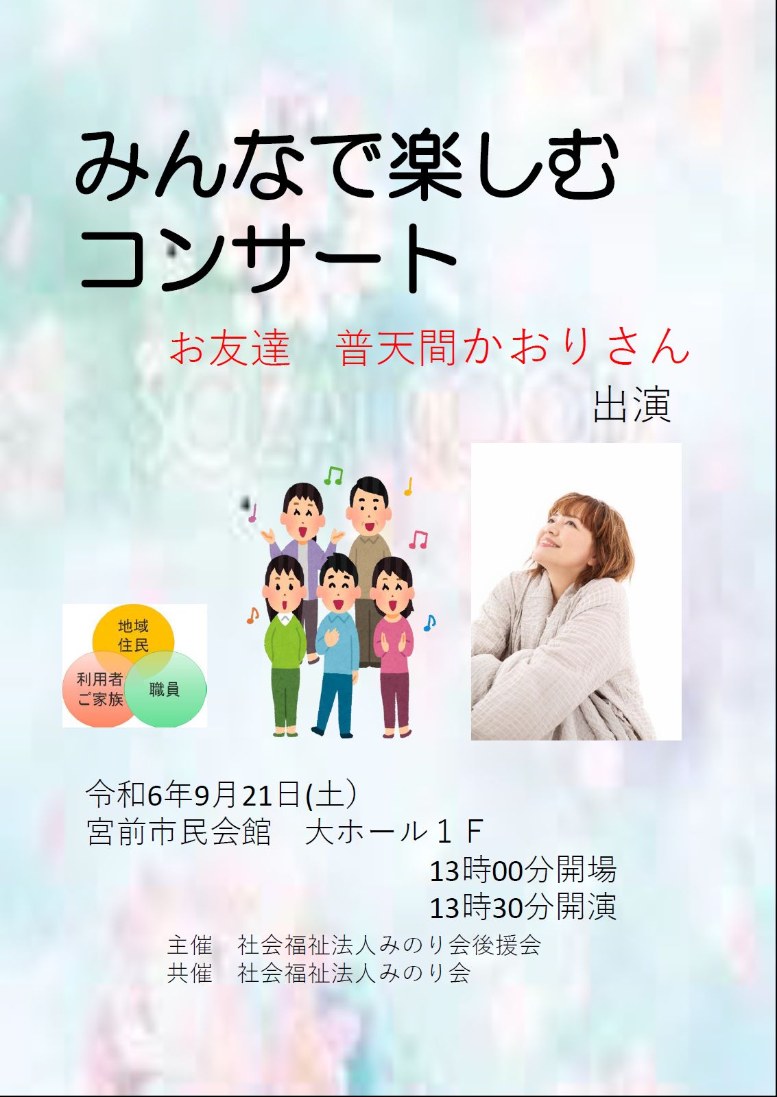 普天間かおりステージは 13時15分~14時で予定しています。 |