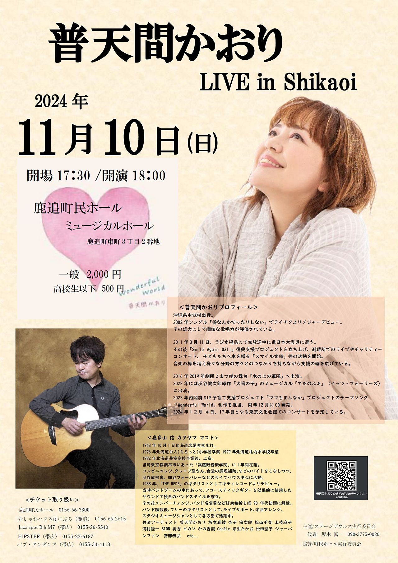 11月30日(日) 普天間かおりコンサート2025 ココロノオマモリ