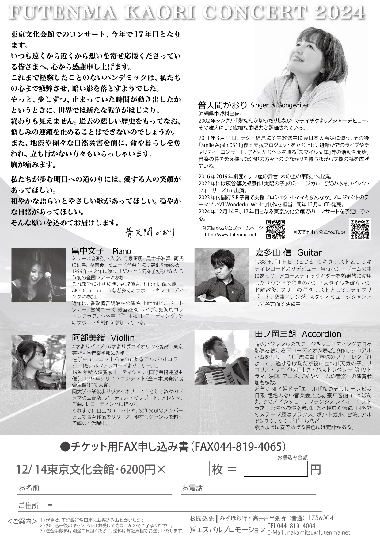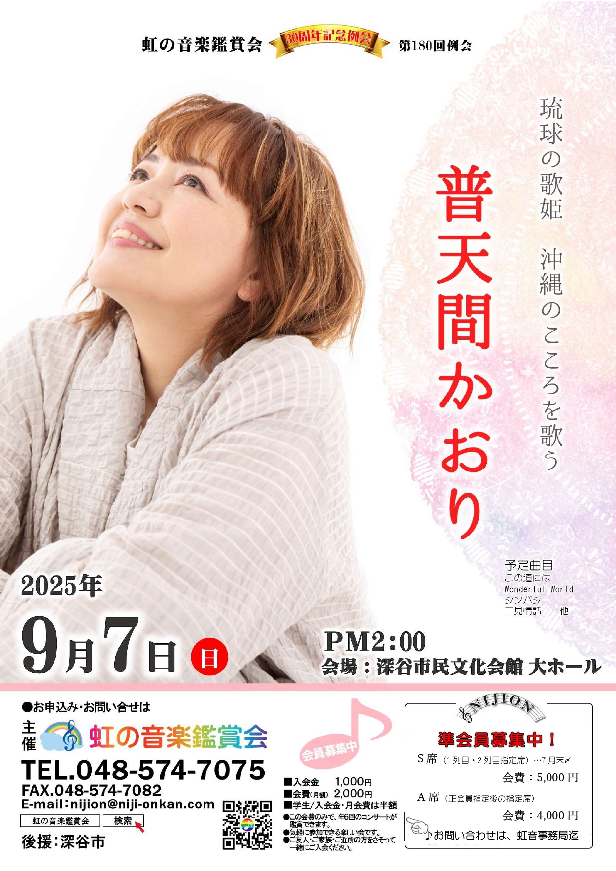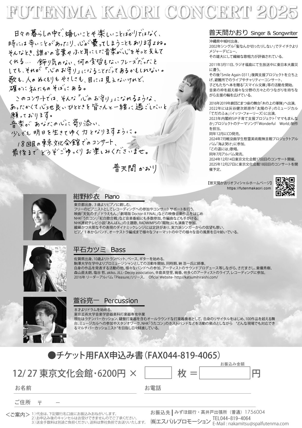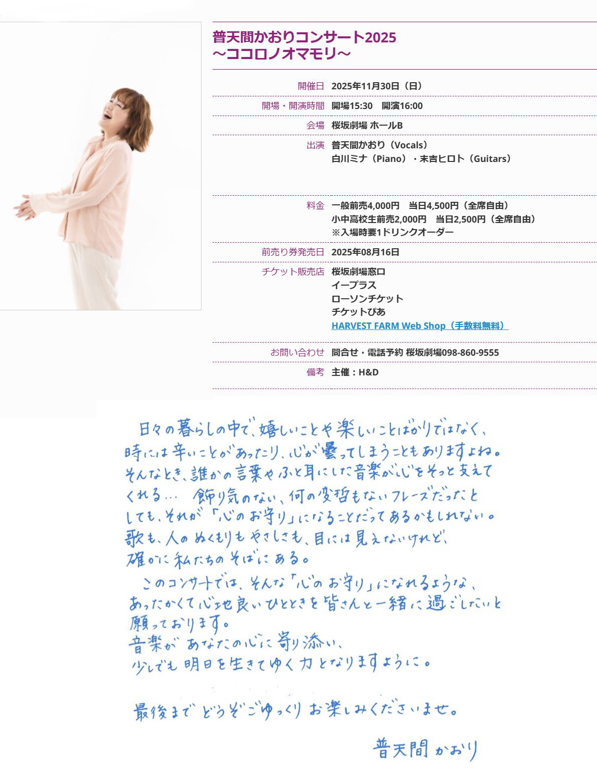12月27日(土) 普天間かおり コンサート2025 ココロノオマモリ |