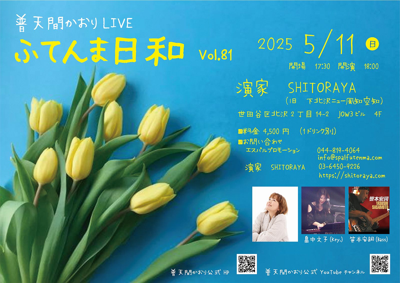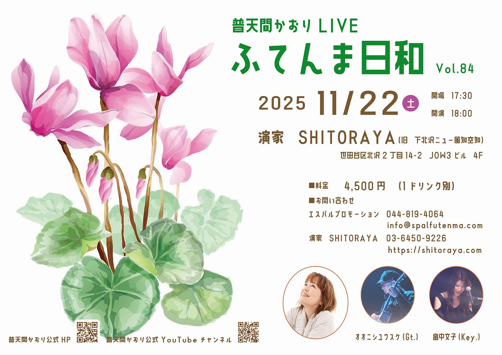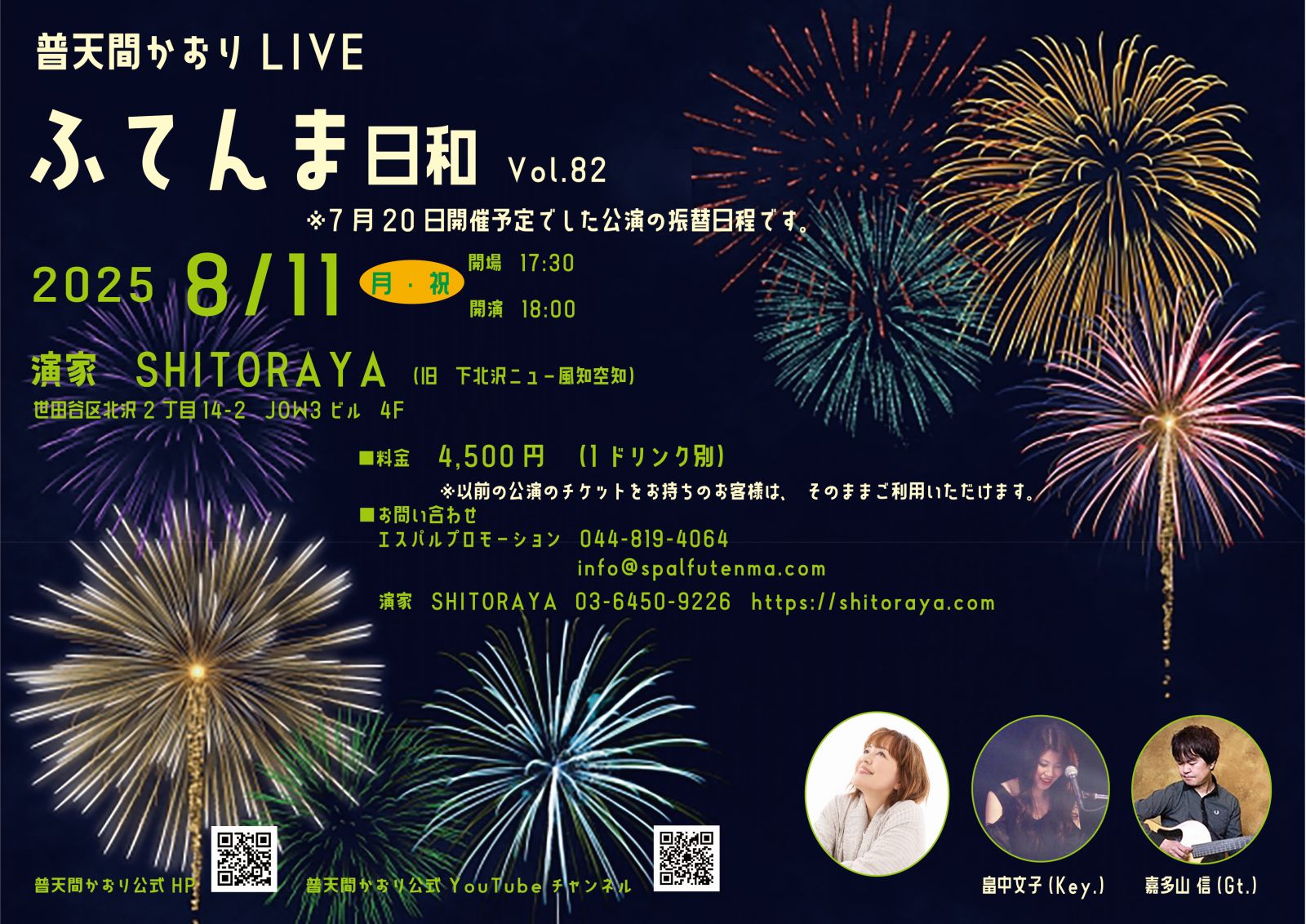 時間は 17時30分開場 18時開演 でいつもより30分遅い開場開演になります。